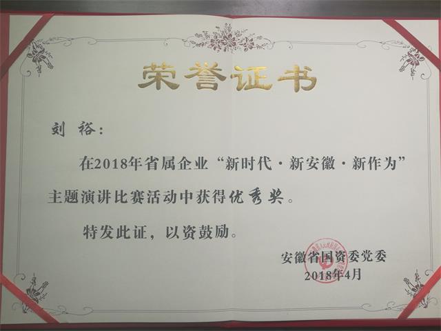 近日,由安徽省國資委黨委舉辦的2018年省屬企業(yè)“新時代·新安徽·新作為”主題演講比賽圓滿落下帷幕,經(jīng)過激烈角逐,皖天然氣壓縮公司劉裕榮獲“優(yōu)秀獎”的佳績。