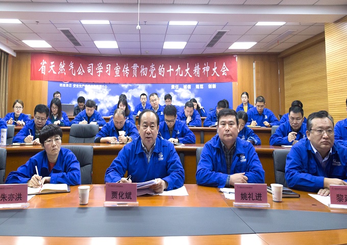 11月14日,省天然氣公司召開學(xué)習(xí)宣傳貫徹黨的十九大精神大會(huì)。集團(tuán)公司副總經(jīng)理、省天然氣公司黨委書記、董事長(zhǎng)賈化斌作重要講話。省天然氣公司黨委副書記、總經(jīng)理姚禮進(jìn)主持會(huì)議。公司領(lǐng)導(dǎo)班子、中層管理人員在主會(huì)場(chǎng)參加會(huì)議,各中心、子公司在分會(huì)場(chǎng)通過視頻系統(tǒng)實(shí)時(shí)收看會(huì)議。